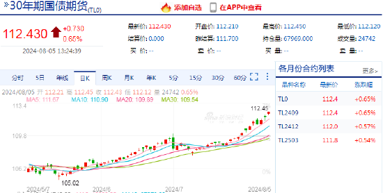 快讯:2024年8月5日,国债期货30年期主力合约涨0.65%报112.43元,续刷新高。